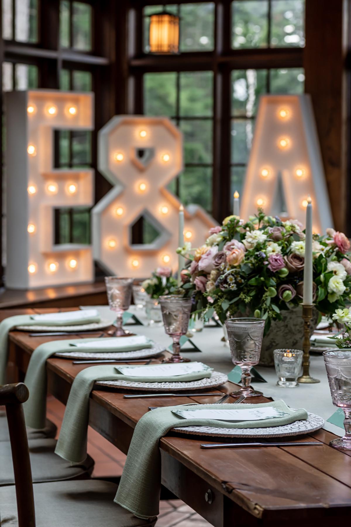 Willowdale Estate will provide setup and signs for all food stations. You may want to plan for table centerpieces, a guest favor and seating cards for your guests if you plan to assign seating. You may also choose to add personal décor to the Great Room shelves and mantelpiece.